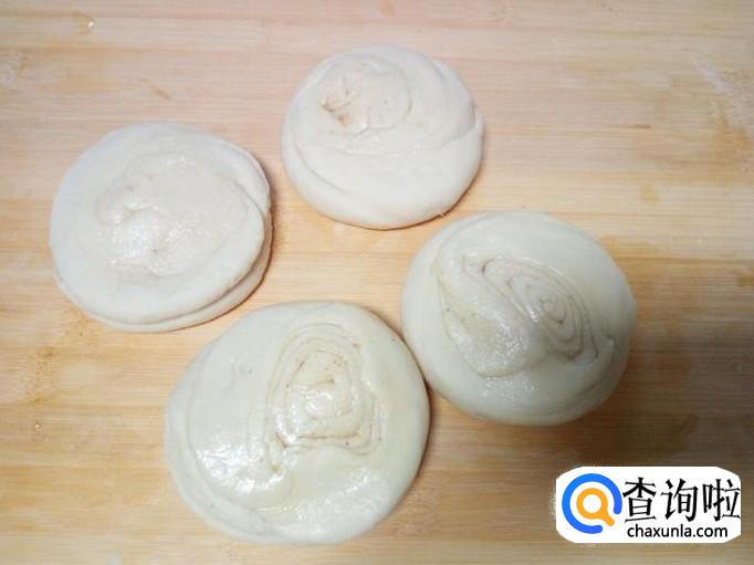把切好的面段用手拧成花卷状,然后按压成饼状。