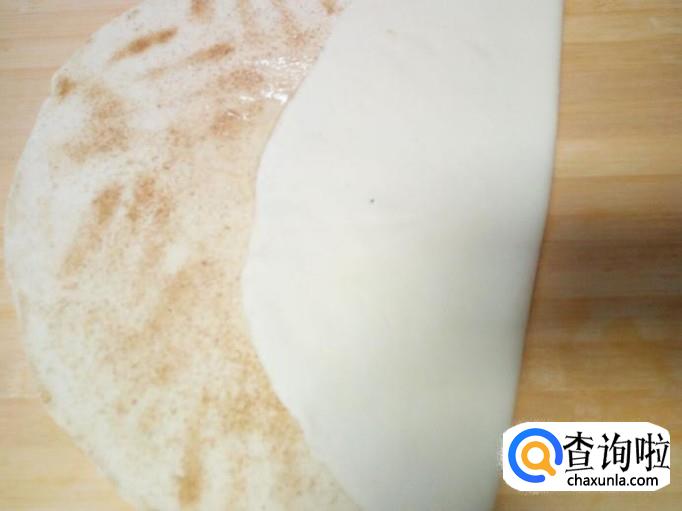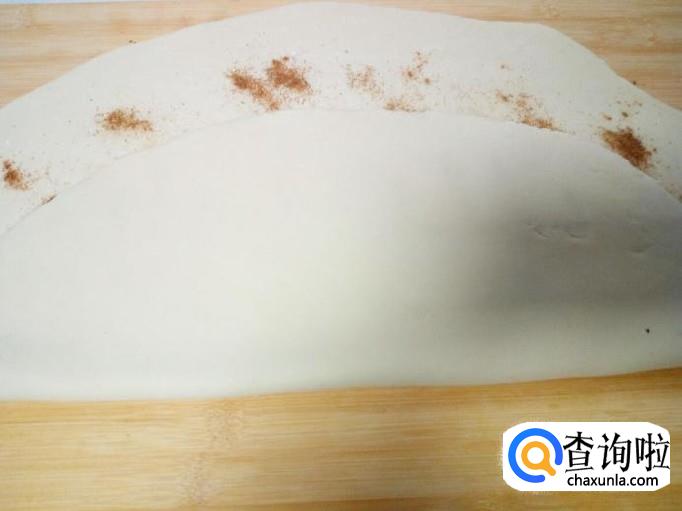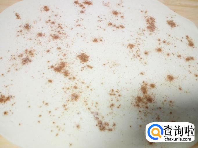 在擀好的面片上撒上入五香粉,盐,味精,(喜欢吃甜口,可以放白糖),把调料均匀开(把面片上翻,对折,轻按),然后用擀面杖轻轻碾压一下。