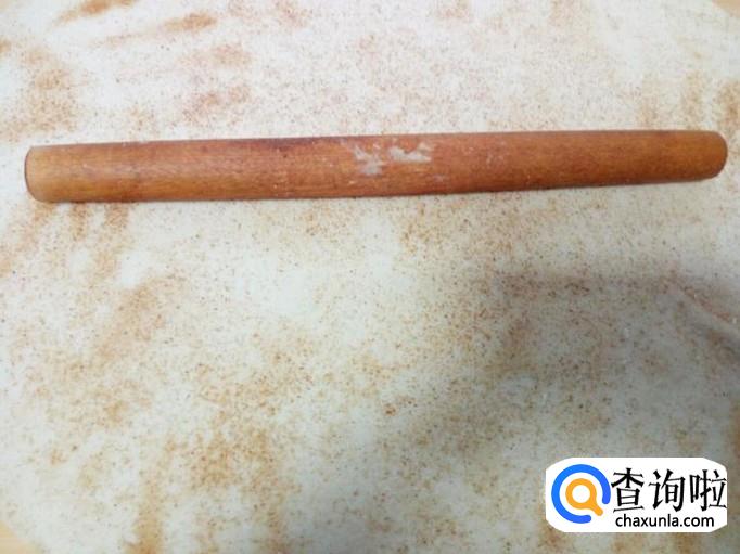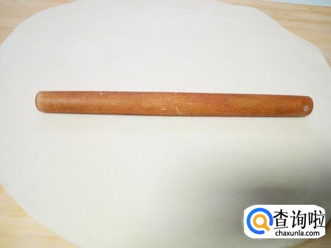 再用擀面杖擀成0.3公分左右厚的面饼。
