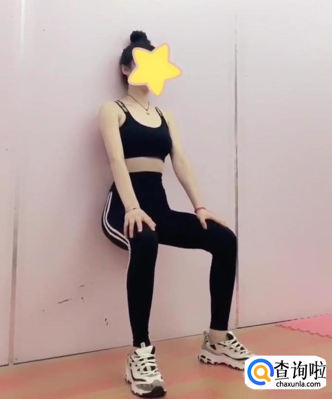 背部贴在墙上,膝盖垂直弯曲,小腿垂直于地面。这个动作虽然是静态的,但是很累的哦,贵在坚持。