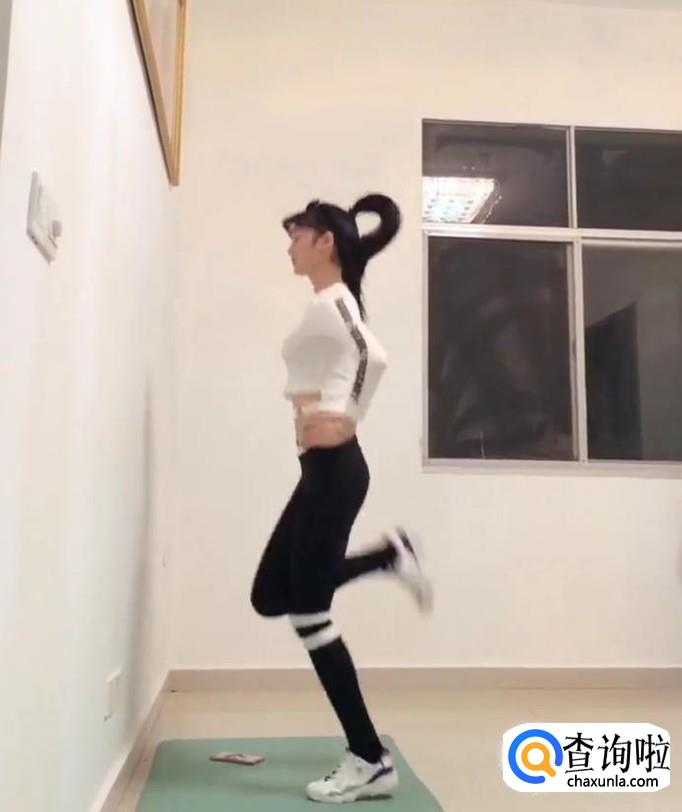 原地小跑,每次脚后跟尽量贴到屁股。每天三组,每组三十个。