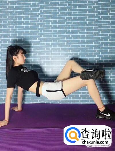 人向上撑起,一条腿垂直于地面,另一条腿的脚踝处放在这条腿的膝盖上。每天四组,每组35个。