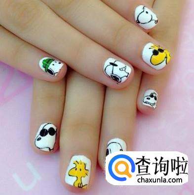 可爱俏皮的开通图案美甲。绘有卡通图案的美甲可爱又俏皮,非常适合春天,在新年的初始也给自己做一个活力满满的美甲吧。
