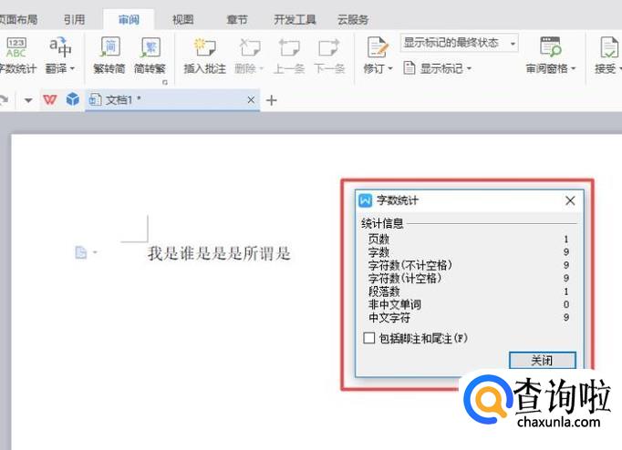 最终结果如图所示,之后就会弹出一个界面,界面中会有详细的字数统计,如图所示。