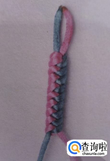 然后那编好的结翻转过来,并将位于下方的粉线拉出一个小线圈。