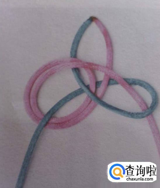将蓝线从左到右绕过粉线,接着再从粉线形成的两个线圈中穿出来。