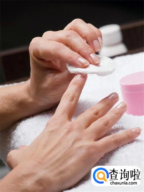 卸甲油是必不可少的,不然的话你只有用小刀一点点刮去的份了。买来卸甲油倒在棉球上或者化妆棉上,将棉球完全浸湿浸透。