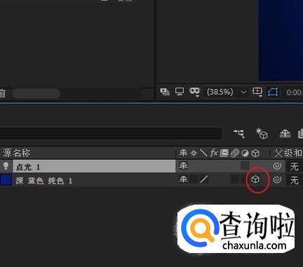 此刻我们会发现,页面并没有任何效果。这时候我们需要把背景层的三维开关打开。
