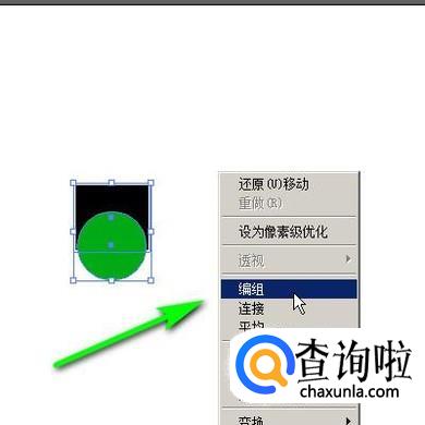 下面举例演示操作方法,比如下图中有黑色的矩形与绿色的椭圆形,接下来给这两个形状进行编组。