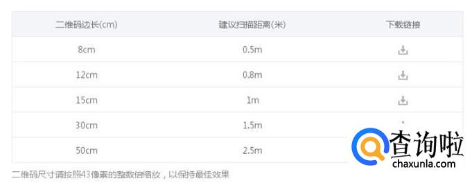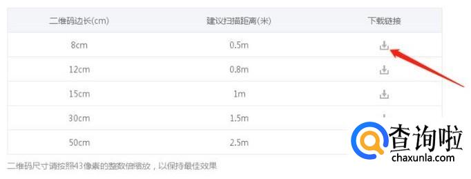 接着就会出现一个新的菜单,有各种尺寸的二维码供你选择,点击你想要的尺寸后面的下载按钮,就可以将二维码下载出来了。