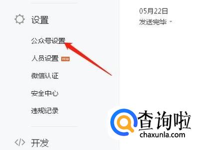 登录进去后,在首页的“设置”菜单下,点击“公众号设置”。