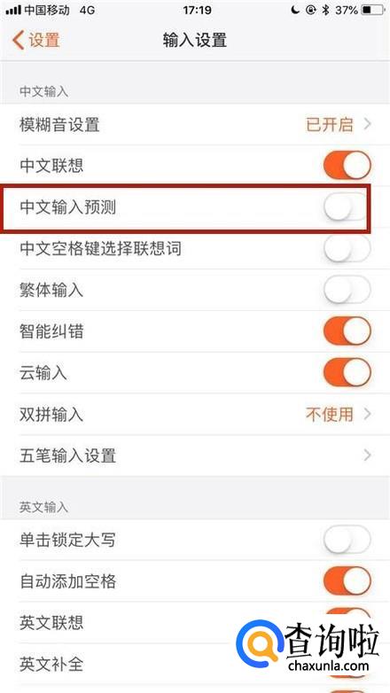 最后点击关闭中文输入预测开关就可以了,你学会了吗?赶快动手试一试吧。