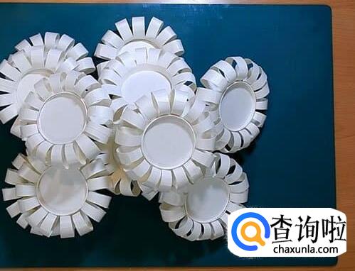 先把纸杯杯口凸起的那一条剪去,所有的纸杯都要这么处理好。