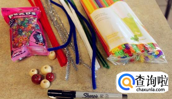 准备好材料,手工制作卡通人物火影忍者只需要:珠子、毛根、吸管就可以了。