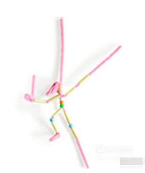 最后用胶枪把珠子粘上,史上超级简单的跳舞小人就制作完成了。可以用不同颜色的毛根和吸管,制作不同颜色的舞者小人,摆放在一起就可以组成个歌舞团了!