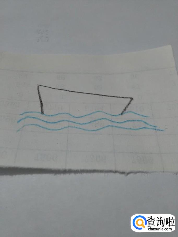 在海水上面,画一个没有底边的梯形,表示轮船的船体。