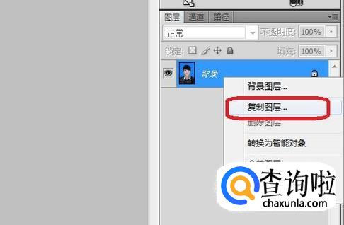 右键点击背景图层,选择“复制图层”,创建一个副本。