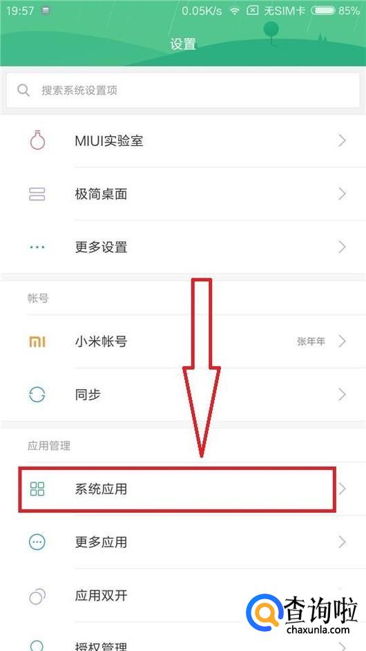 打开手机设置,找到“系统应用”。