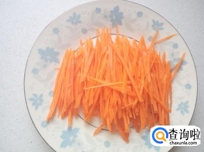 胡萝卜去皮,用水清洗干净,控干水分,切成丝。