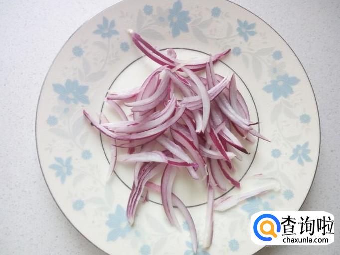 圆葱去皮,用水清洗干净,控干水分,切成丝。