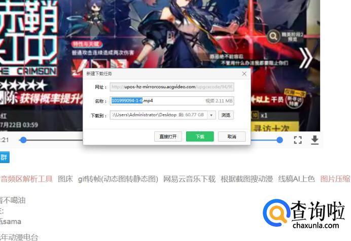 浏览器就会弹出下载提示窗口,点击下载即可;