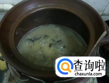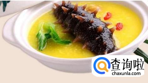 然后咱们在锅里面加入清水,水开了以后把小米放进去煮,然后等小米煮的差不多好了以后加入姜丝、海参。