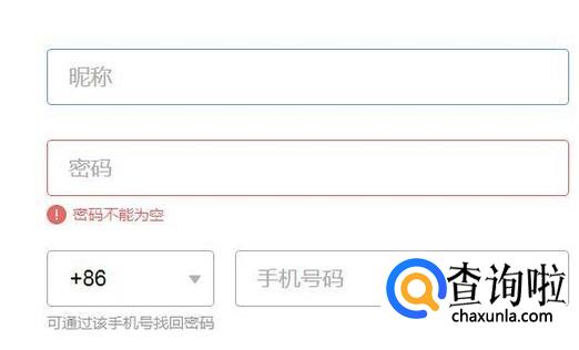 然后输入你的昵称,密码和手机号码,如下图所示。