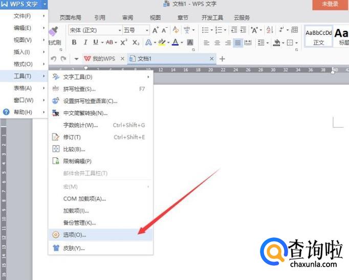 我们可以设置关闭自动保存或者定时备份,首先打开wps文字。点击左上角的小箭头,在下拉菜单中选择工具。