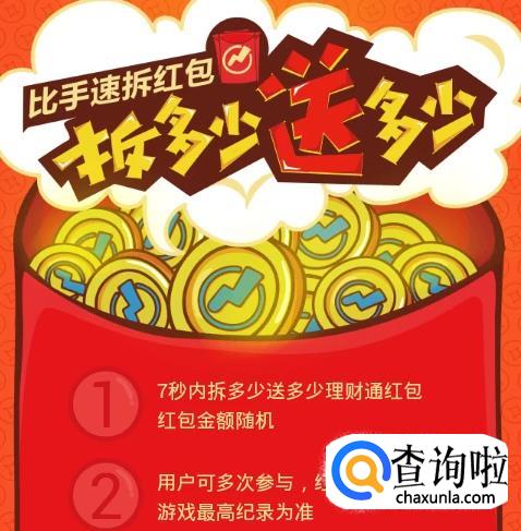 理财通不定时的会推出一些抢红包的活动,点击活动页面的立刻参与,按照活动规则抢红包,拆分都可以的。