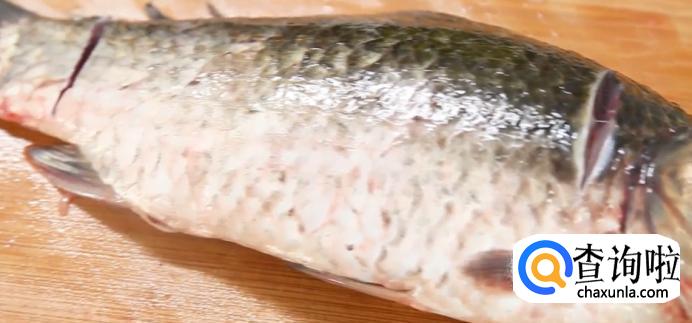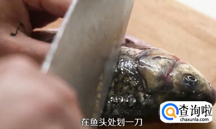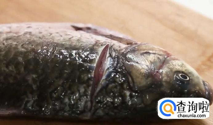 接下来就是去鱼腥线,在鱼头的位置开一道口子。