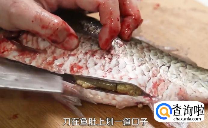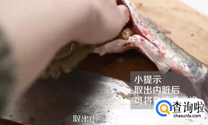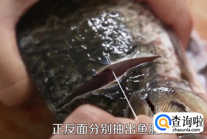 掰开鱼的鳃盖,用手指挖掉鱼鳃。