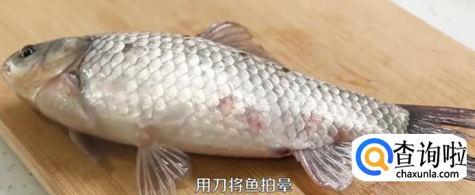 用钝器敲击鱼的头部(眼睛后上侧),鱼会昏迷,便于接下来的操作。