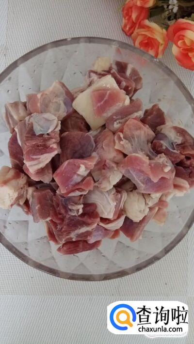 准备适量牛腩块,解冻后,用清水多洗几遍,洗去血水。