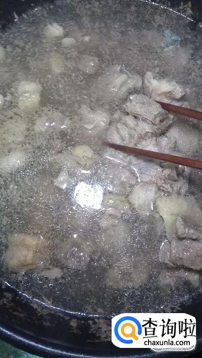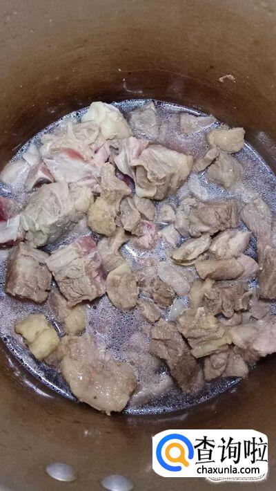 锅中烧开水,水开后将牛腩块放入锅中焯水,然后将牛腩捞出,放入高压锅中。