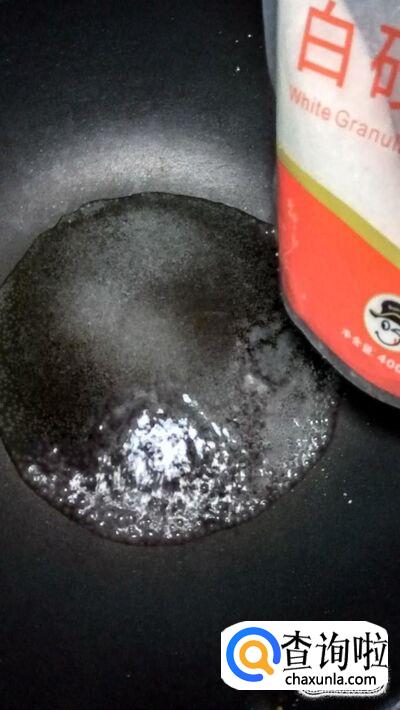 炒锅中放入适量水,再加入白糖,炒至变色后加入适量清水。