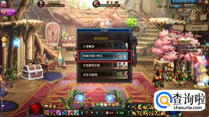 登录游戏后,使用赛丽亚房间右侧的传送阵。