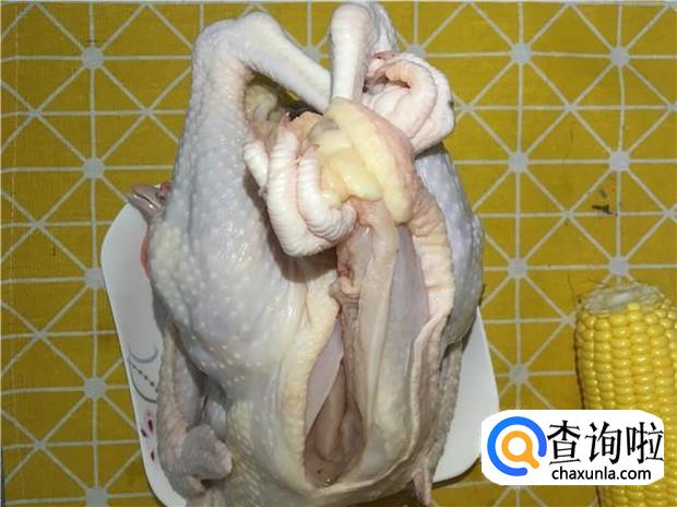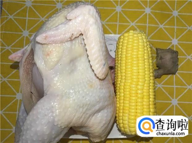 准备好一整只土鸡,一根玉米,一块老姜。