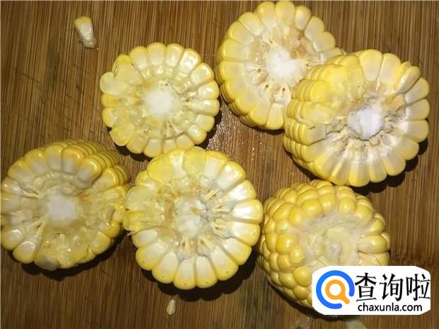 玉米清洗干净,切成玉米块。