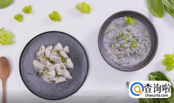 【青菜芋艿羹】芋艿5个、小青菜100克、火腿50克
