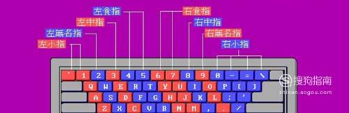 击键方法练习熟练后,我们接下来练习全键盘打字,首先要明确每个手指负责的键位,键盘左半部份由左手负责, 右半部份由右手负责。