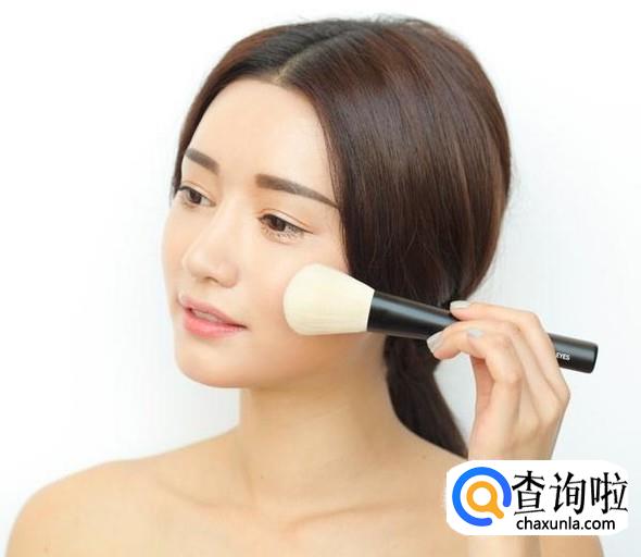 修容完成后,用散粉刷上散粉或者蜜粉,超自然的修容就完成啦。