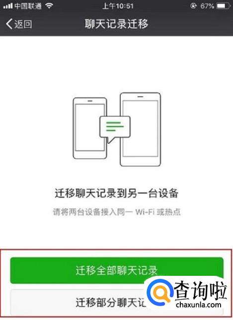 最后选择【迁移全部聊天记录】或者【迁移部分聊天记录】