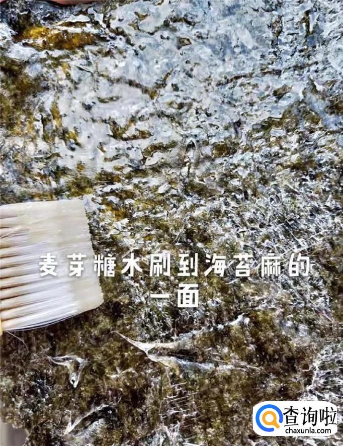 接着将麦芽糖水刷道海苔上面,如下图所示。