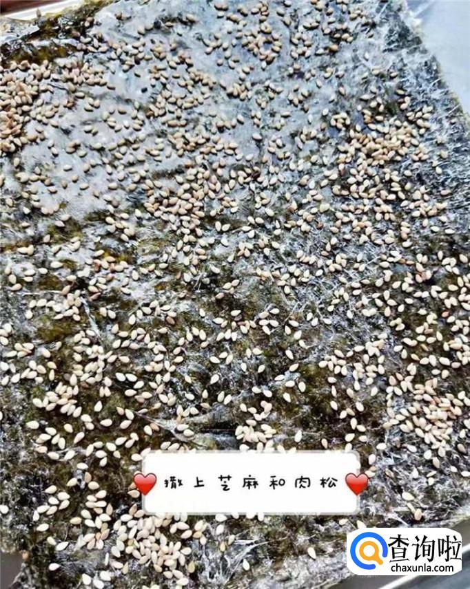 然后在上面撒上我们爱吃的肉松和芝麻,如下图所示。