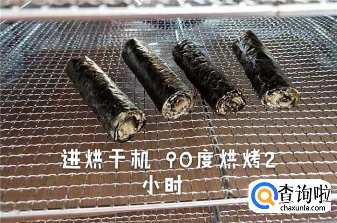 然后把做好的肉松芝麻海苔卷放进烘干机,90°的温度烘烤两个小时,如下图所示。