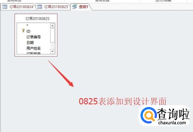回到查询设计主界面,我们看到刚才选择的表已经加入到设计界面了,如下图所示