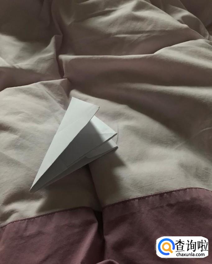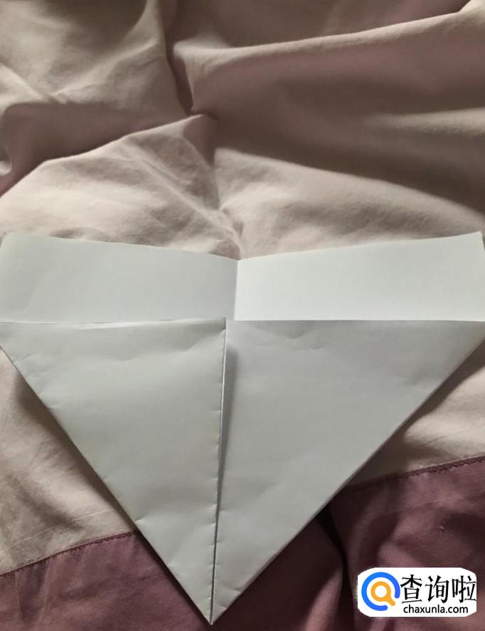 沿着折痕,将两边的角折下去,有点像折纸飞机一样的