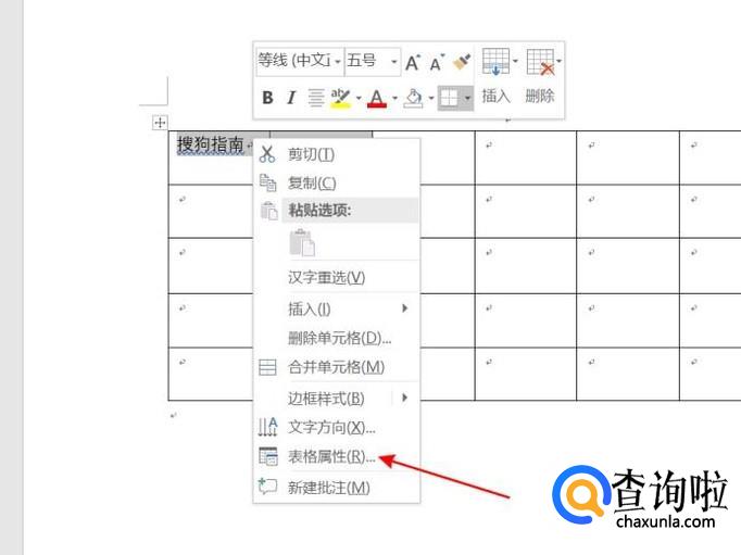 点击弹出菜单栏表格属性。