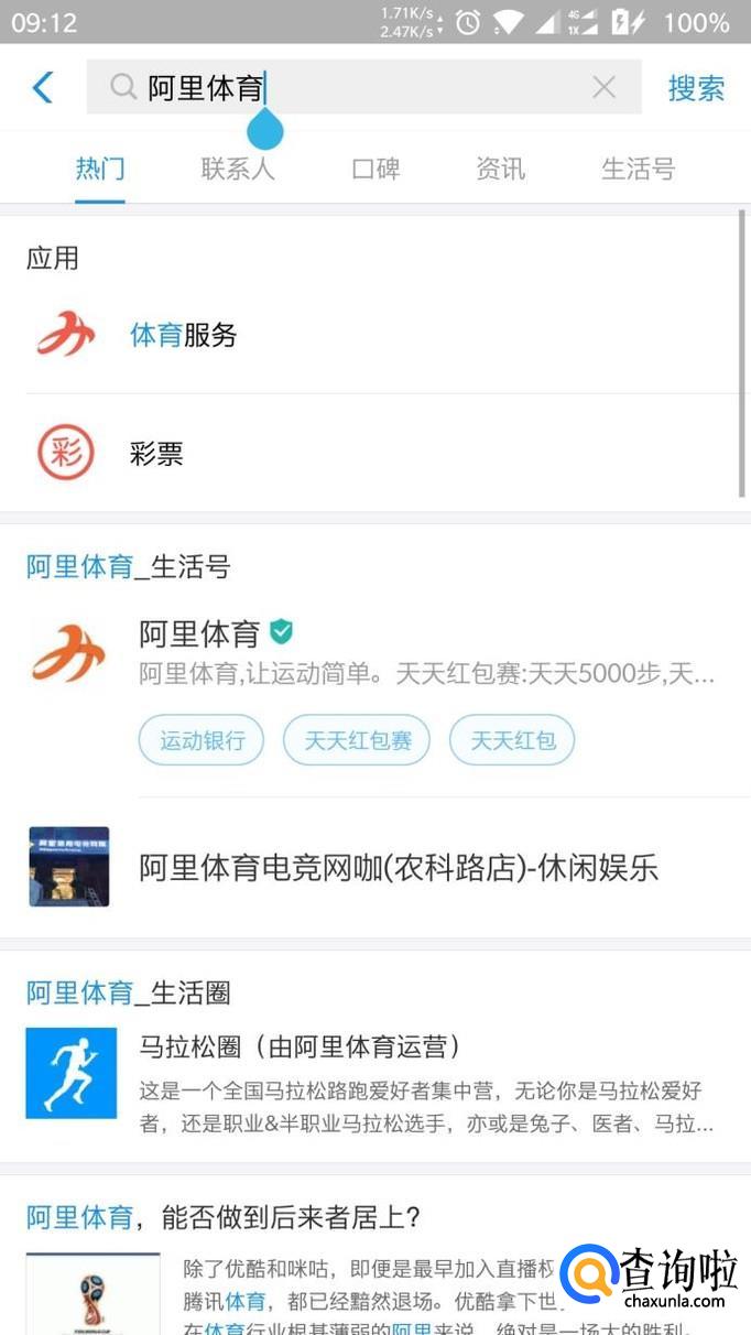 然后在上面的搜索框中搜索阿里体育