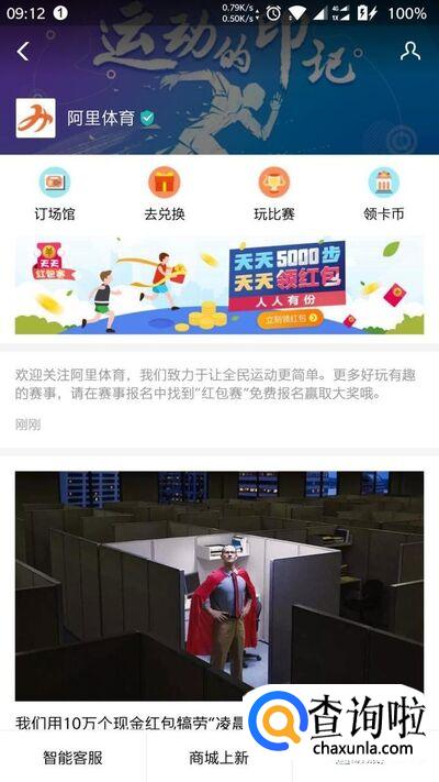 然后点击阿里体育,进入界面,选择运动红包进入活动主界面